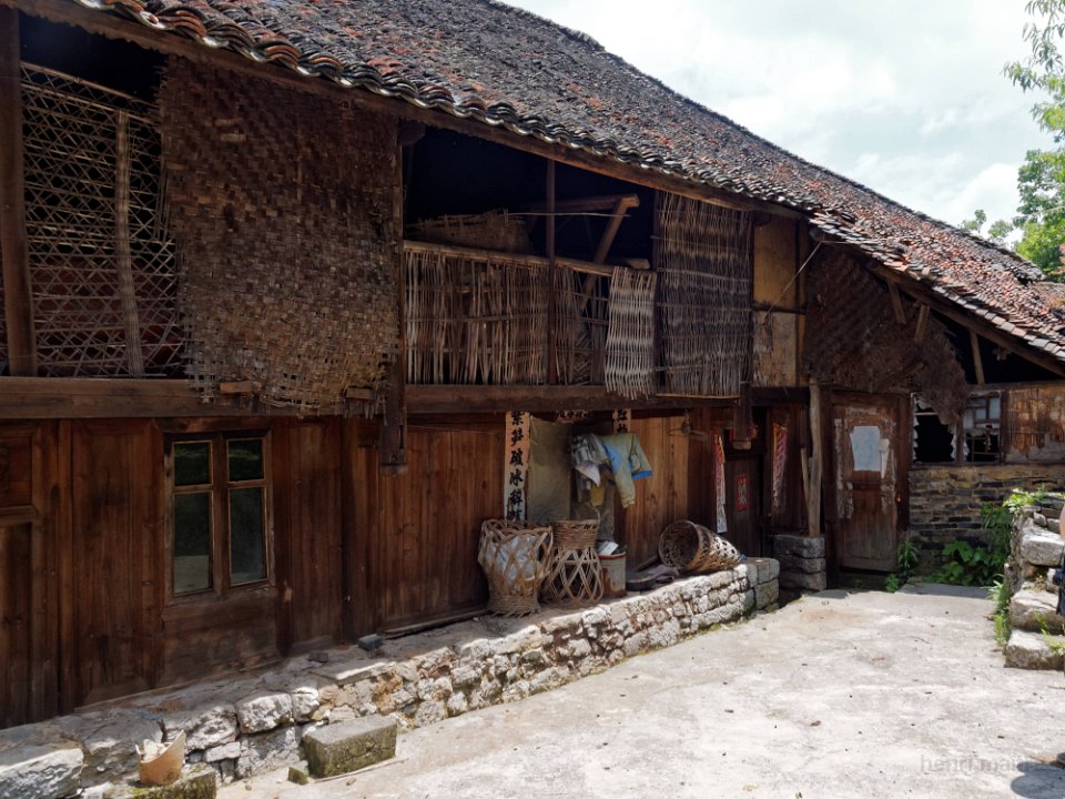 Village Buyi de Zhenfeng : maison de bois, nattes de bambou et branchages tressés