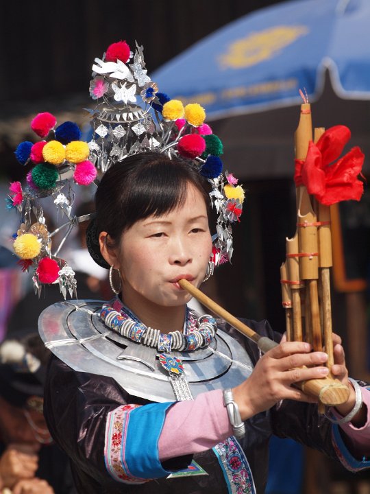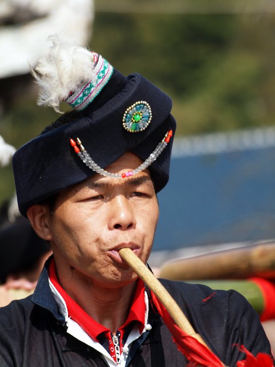 joueur de lusheng : turban traditionnel