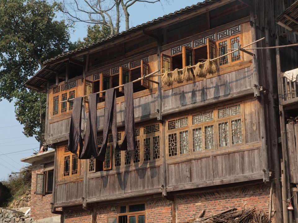 Belle maison ancienne : riz et tissu à l'indigoBelle maison ancienne : riz et tissu à l'indigo