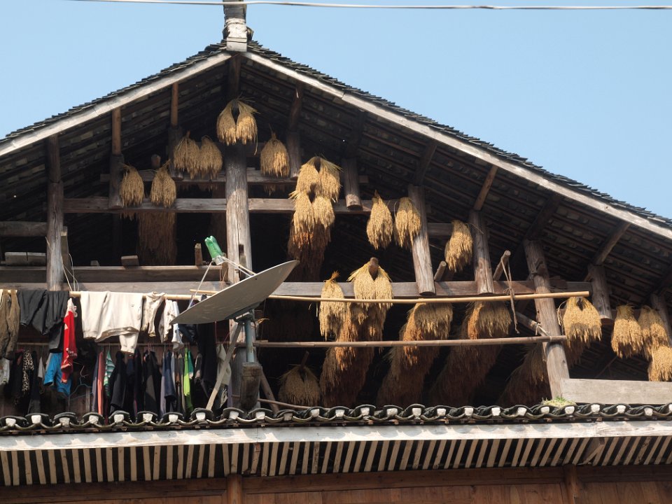 Séchage du riz, armoire à vêtements et ... antenne de télévision.Séchage du riz, armoire à vêtements et ... antenne de télévision.